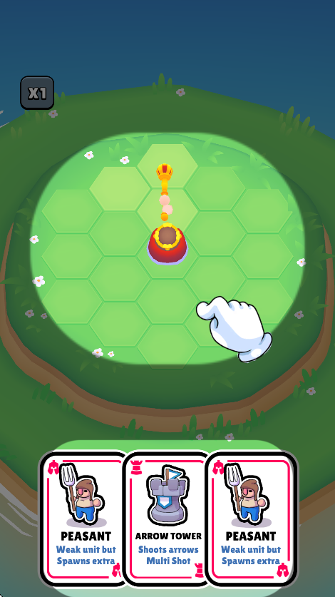 1. 卡牌放置与旋转召唤:玩家需在关卡中选择初始卡牌放置于六边形格子,国王旋转时每经过建筑即生成对应兵种,形成动态兵力补充链。