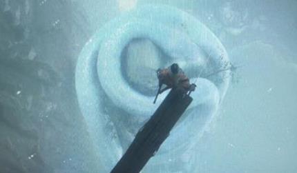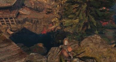 然后,就能到风筝附近的高坡,用风筝钩绳到对面,从右边跳下,一路钩绳,能看到一个鬼佛。再往前,可以发现巨大的白蛇盘旋于下,跳下去忍杀,就能得到鲜柿子。