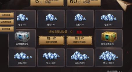 2.在本页面花费6元购买60钻石可以获赠1把宝箱钥匙,花费60元购买600钻石可以获赠11把宝箱钥匙,宝箱钥匙可以累计(1OS用户购买成功后需手动刷新钥匙数量) ;