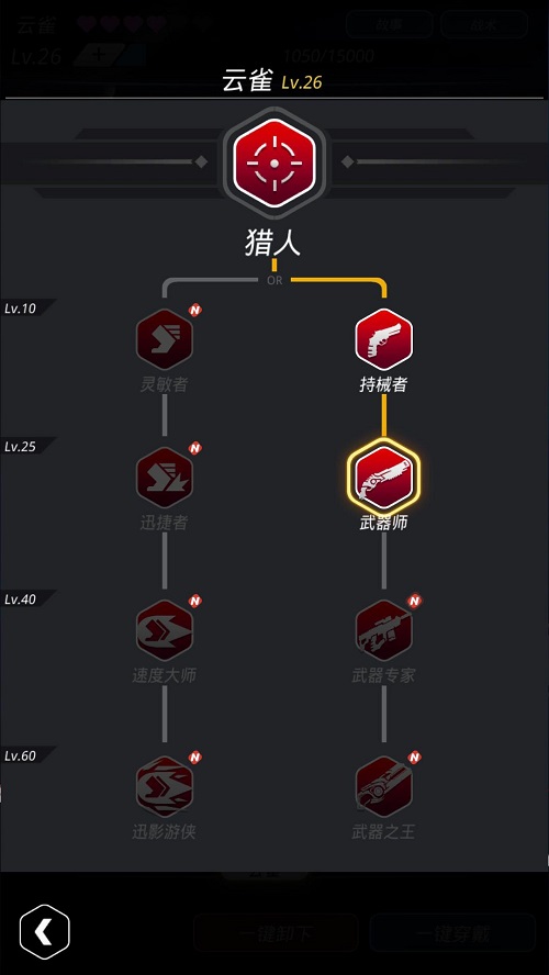 猎人职业的游侠较多,他们的转职方向主要差别在速度。比如云雀晋升为持械者可以增强普通攻击伤害,而晋升为灵敏者就可以使用技能攻击。对于云雀来说,升级为持械者,不止可以提高攻击力,还能为自己增加吸血能力。