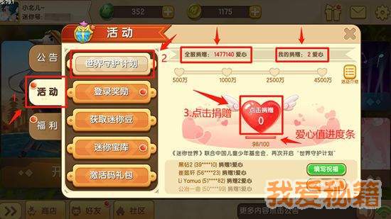 迷你世界世界守护计划爱心值获取攻略