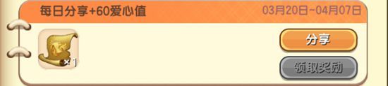 1. 每日分享,即可获取60爱心值和传送卷轴1个