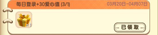 2. 每日登陆,即可获取30爱心值和欢乐礼包1个