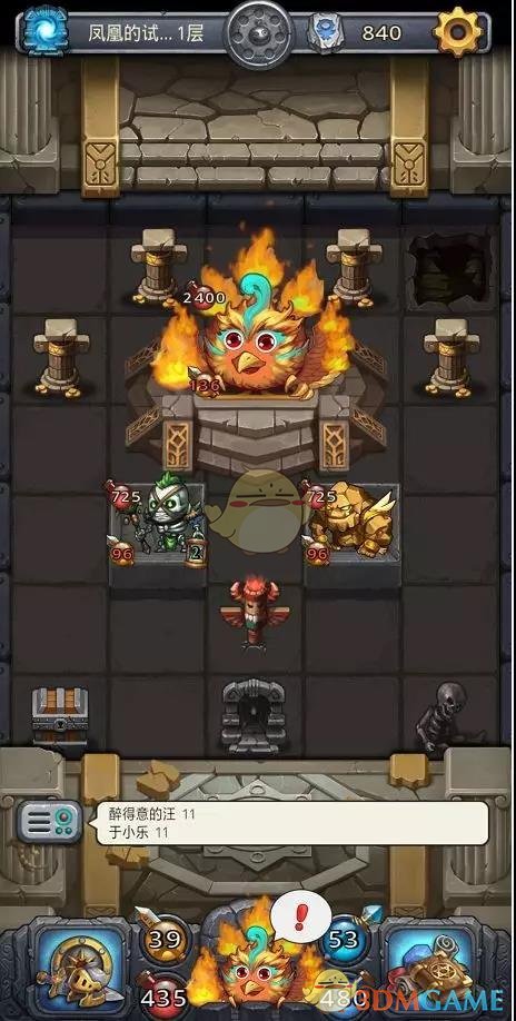 难度有点大,boss凤凰本身太肉,特性减伤加双抗还能复活一次,需要活用画面中间的“火焰图腾”(图腾有CD需要算好回合)。