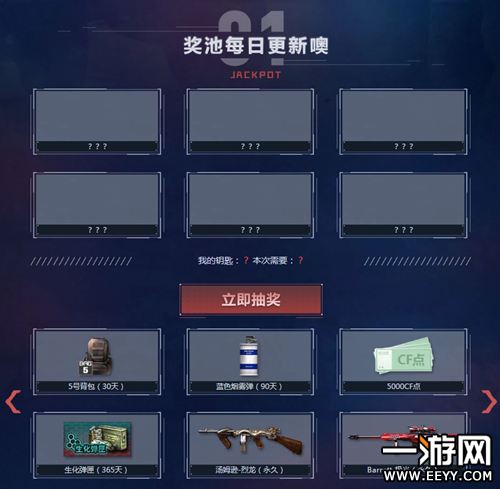 2、每天展示6种奖励,奖励每日零点更新,彩蛋每日清空;每天抽奖前两个顶级奖励可自选;