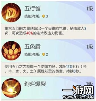 注意:被动是死亡后提升全体五行属性妖灵12%伤害。