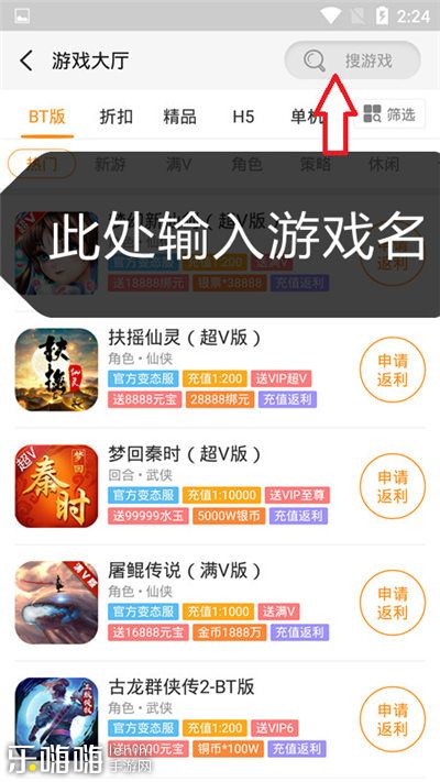 打开58资源APP在搜索栏寻找你心仪的游戏,效果如下: