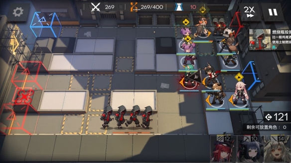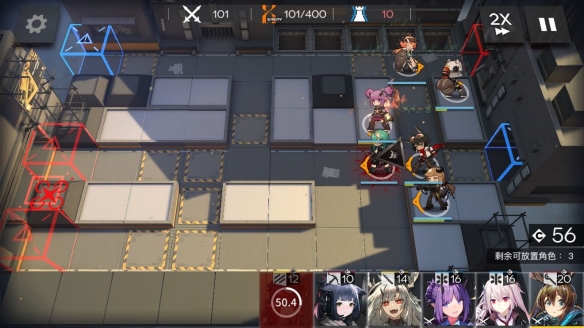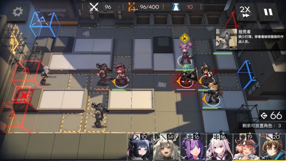 然后开局先放两个先锋和一个aoe输出。击杀回费前锋放在前面,技能回费先锋放在后面。
