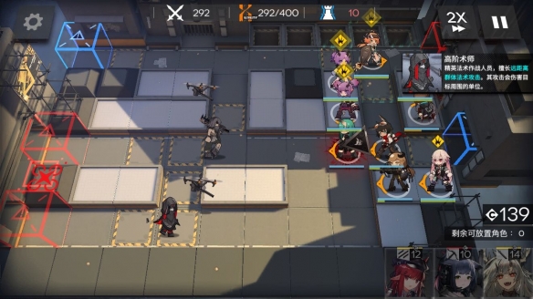 难点2:打完上面那几波远程怪之后到了290左右。会有几个高阶术师(就是会aoe的术师)出现。可以在半路用先锋耗血,会比较轻松。这是非常考验重装的坦度和奶的奶量的。如果不够的话加上飞行怪很容易在这里翻车。