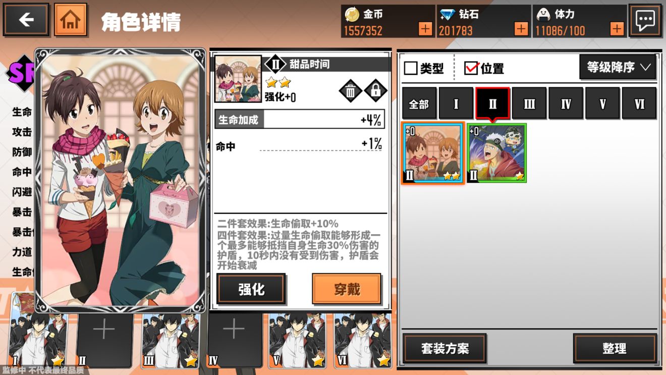 4、四件套的时候效果也不错暴击时有40%几率造成目标生命上限2%的额外伤害,实际造成的伤害最高不超过100%攻击,很适合兰博使用。