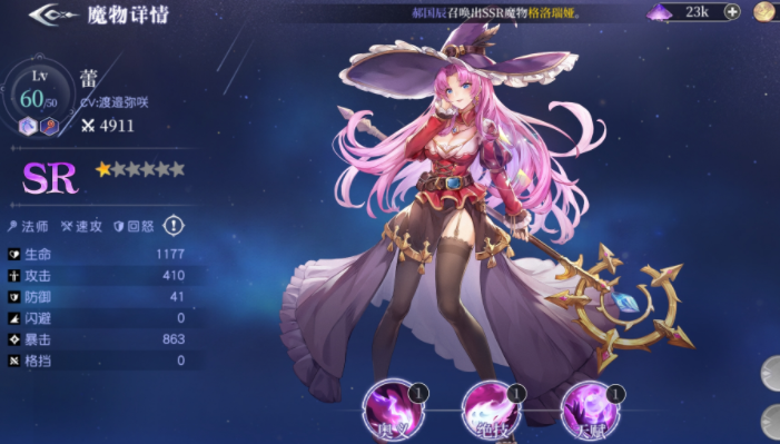 蕾这个英雄和ssr相比,奥义和攻击力并不高,主要是凭借她成功击杀后返还所有怒气消耗,即使只要每次都有击杀,就能一直放回下去,另外,目标身上每层(枯萎)都会提升25%威力,所以只要目标身上堆到足够多的“枯菱”时,击杀的难度将会大大降低。在目标站位比较分散时,AOE战术无力的情况下,可以用蕾为核心,就能打出更高的伤害。