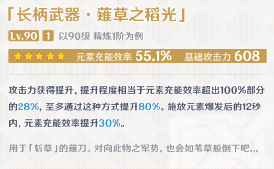 *「长柄武器·薙草之稻光」为限定五星武器,不会进入「奔行世间」常驻祈愿。