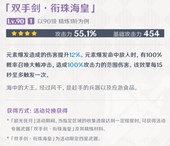 *「双手剑·衔珠海皇」为活动限定四星武器。