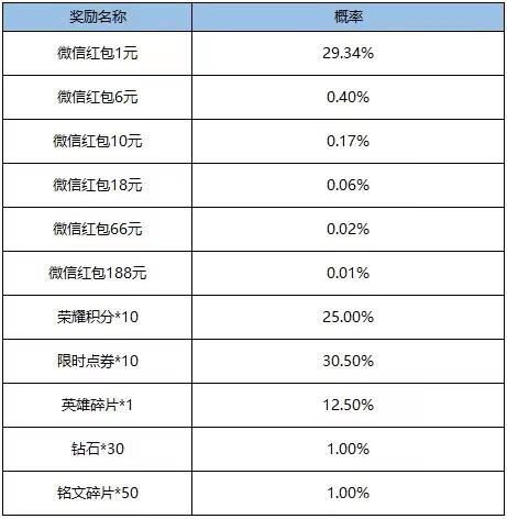 祈福可获得下列奖励之一:红包(微信区限定)、Q币(手Q区限定)、荣耀积分、限时点券、英雄碎片、钻石、铭文碎片!