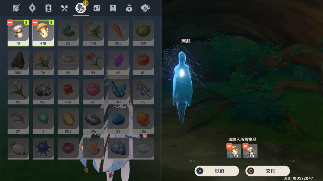 6,将三个蘑菇,和三个沐风蘑菇交付给阿部