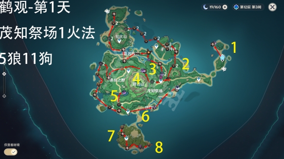 鹤观的怪物分布以3天为周期循环变化,参照物为茂知祭场传送点附近的火法师,火法师数量对应鹤观轮回的天数。