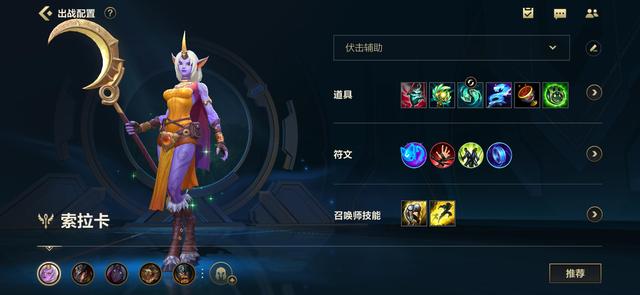 装备选择方面,第一件选择炽灼魔器,这个装备属于辅助装差不多人手一件的装备了,我们主意它的被动,魔器:每当你为一名我方英雄治愈生命值或提供护盾时,你和目标英雄都会获得10-30%攻速加成,且攻击会造成16-30的额外魔法伤害,持续6秒。我们要知道索拉卡主要也是提供护盾,我们配合上这个装备会使技能达到最大的发挥。第二件和谐回音,这个装备也是辅助人手一件了,我们也要注意被动,和谐回音:移动和施法时会积攒和谐能量,和谐能量达到100时,下一次对友军使出治愈或护盾型技能时,会为你的目标及附近最多3个我方英雄回复70生命值+10%的治愈量。这个技能也会给索拉卡及队友带来一个很大的提升。第三件暗影.明朗之靴,这件装备主动技能在使用时可以召唤两个小幽灵去寻找附近敌人造成减速,这个技能可以用来追击敌人或者探视野。第四件流水之杖,我们也要注意装备的被动,激流:カ友方英雄提供治愈或抉盾,即可让你和该友方英雄获得技能加速与魔法攻去,持续4秒。也是会大大发挥索拉卡的保护能力。第五件雅典娜的恶魔圣杯,我们还是要注意装备被动,猩红代价:将对英雄造成的35%原始伤害储存为猩红能量,最多可储存110至250。使用治疗或护盾时,可消耗猩红能量来治疗友军,使其获得等值治。也是会将索拉卡技能发挥到最大化,提高保护能力第六件保护者誓愿,我们还是还是要注意装备的被动,守护者:在我方英雄身边时会提高戒备。若自己或友军受到敌方英雄、野怪或防御塔的伤害时,双方会获得护盾和跑速,持续1.5秒。(30秒冷却时间)这个技能也是用来提升索拉卡的保护能力。