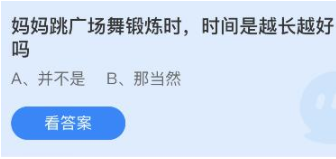 猜一猜:妈妈跳广场舞锻炼时,时间是越长越好吗?这是支付宝蚂蚁庄园2022年03月08日妇女节即将正式的跟诸位亲爱的小鸡宝宝的饲养员们要见面的题目,也是俨然成为当代中国内地流行到不行的一项健身娱乐的运动,接下来就让我们赶紧来看看这道题目的正确答案吧!