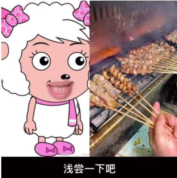 2、后经过网友恶搞,把美羊羊浅尝羊肉拍成视频;