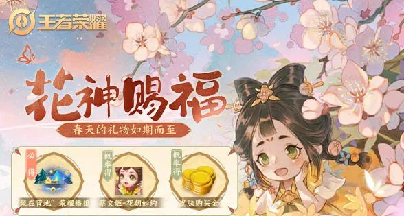 百花盛开,花神赐福!花神带着春天的礼物如约而至,只要参加王者营地的行花令活动,就能体验古人传统的曲水流觞雅事,并必得营地专属的“聚在营地”荣耀播报;