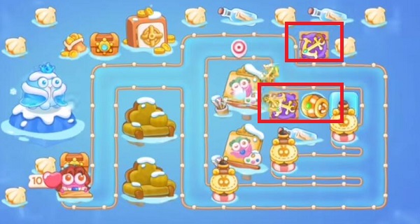4.第5波,在左边造船锚和鱼雷炮,船锚打左上角的宝箱,打掉后会出来火瓶子