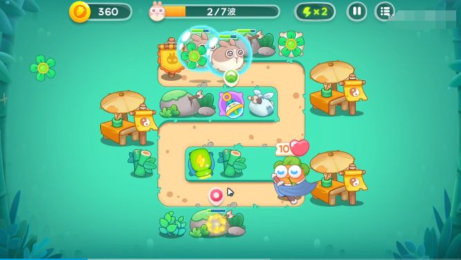 1、这次的新道具是泡泡塔,我们在地图的右上角种植一个风扇,并将其升到最高等级。