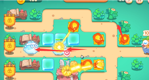 2、冰冻兔虽然有冰冻技能但是很容易被我们打掉,如果我们的火瓶被冻掉了,用另一个火瓶去打火瓶。
