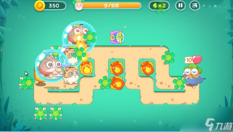 3、左上角也要种一个火瓶开图,这时候多余的金币种一些输出和泡泡在路径四周。
