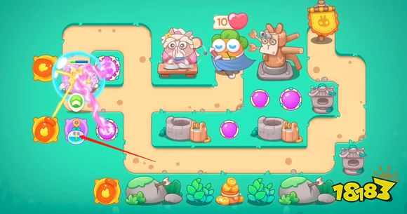 1.第一步放置火炮攻击障碍物,炮清理障碍物,雷球攻击出来的怪物