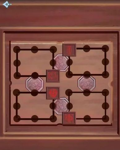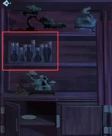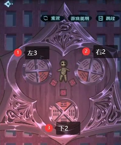 桌上的机关如下图所示,左边房间找到【竹管】给门里的机关引水,在下方点击【左右右左左右左】,用【夜明珠】看画,对应摆好棋局如图3,黄豆放到桌上猜数量,坐垫下找到【小钥匙】打开右边锁着的柜子。