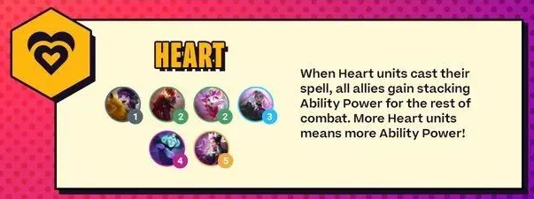 当爱心使者们施放其技能时所有友军都会获得可叠加的法术强度持续到战斗结束为止爱心使者越多法强越高!