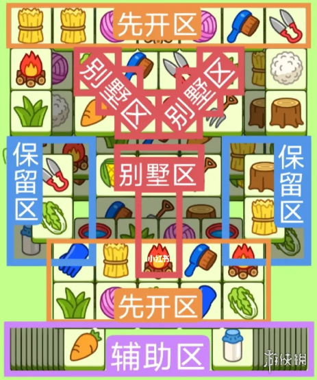 3.必要时可以用紫色盲盒区辅助消除,盲盒区后期不用留太多,留几张备用即可。
