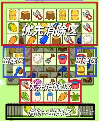 4.蓝色区域中前期尽量保留,后期再配合消除,努力每次都能和叠加区做消除,最后可以配合道具打乱顺序消除