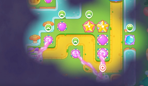 1、在第一波先是放上两个魔法球来进行攻击兔子,其中是给一个进行升级。