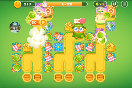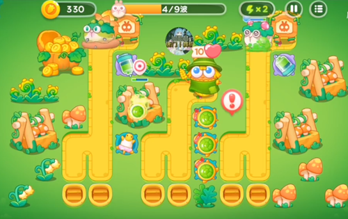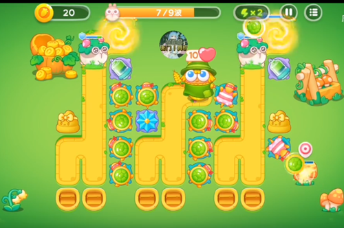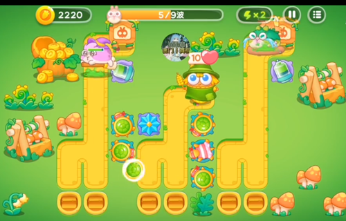 2、第二波对右边的毒针塔来进行升级,升级之后就进行攻击右边的兔子和障碍物。