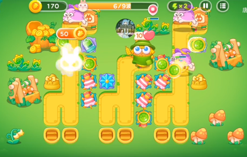 3、在道路的右下方是有三个乌龟塔的,攻击下面的兔子。
